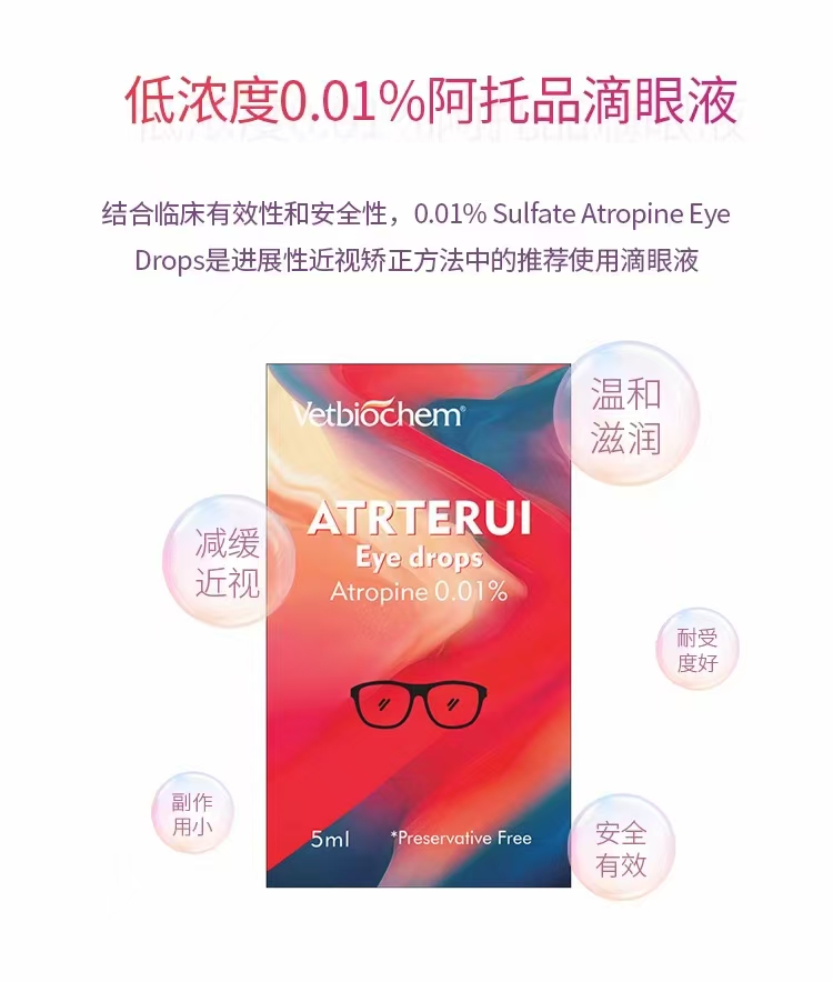 目前除了角膜塑形镜(OK镜)、户外活动等控制手段外,阿托品滴眼液是公认的有效减缓近视发展和控制眼轴增长的首选药物。
