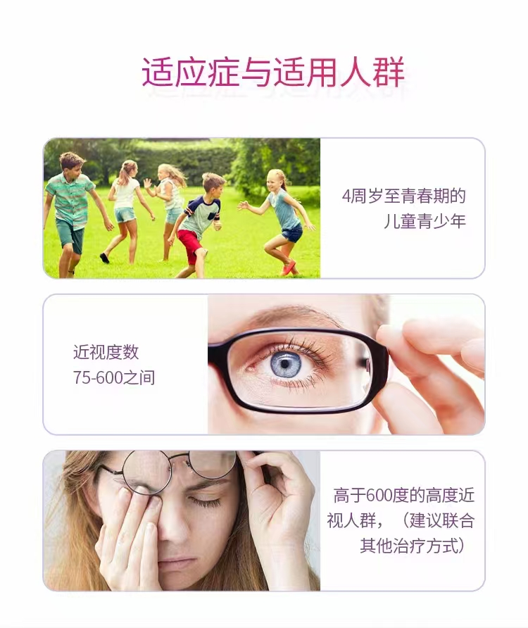 如果用药一段时间后发现控制效果未达到心理预期(特别是近视进展≥0.5D/年),则需要联合户外活动、角膜塑形镜等其他干预措施,每3个月复诊一次。