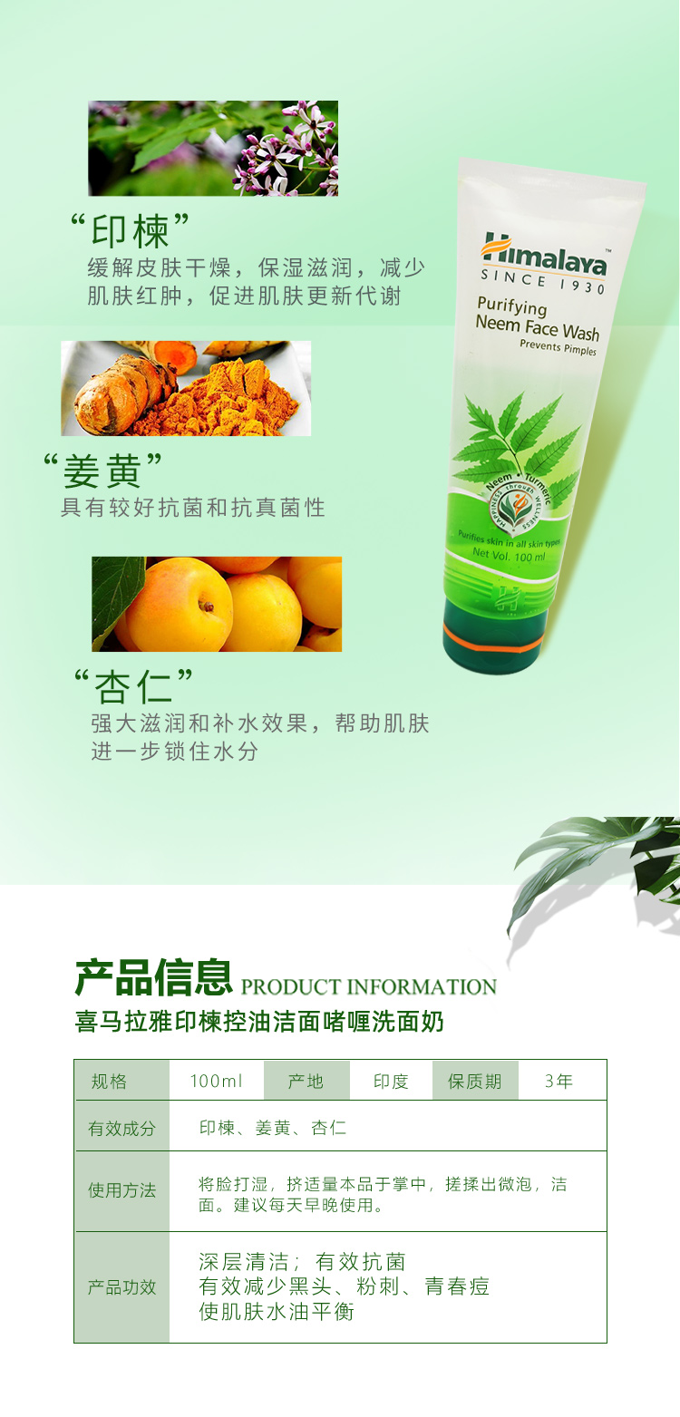 | 产品名称 : | 喜马拉雅洗面奶100ml Himalaya Purifying Neem Face Wash |