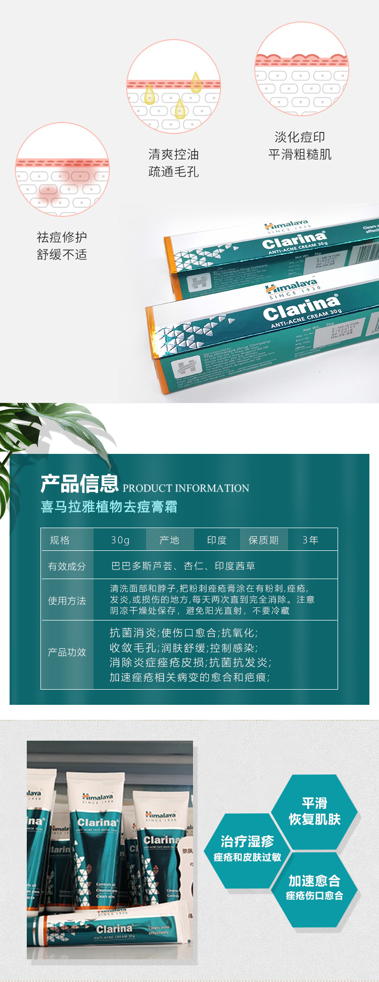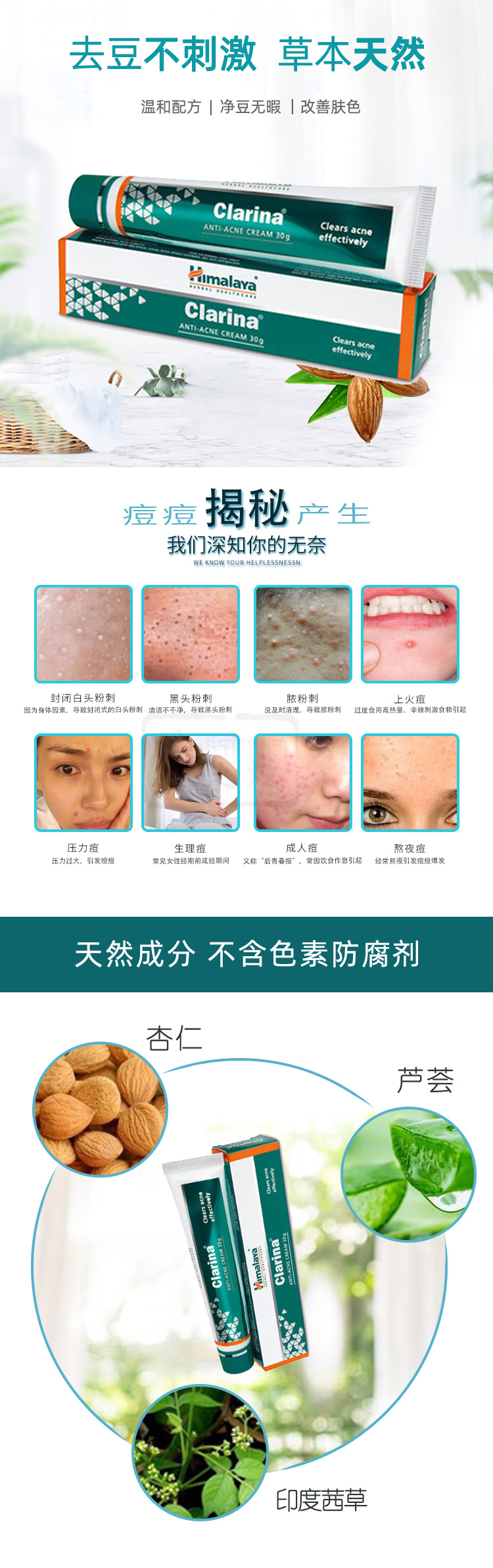 | 产品名称 : | 喜马拉雅祛痘粉刺膏 Himalaya Clarina |