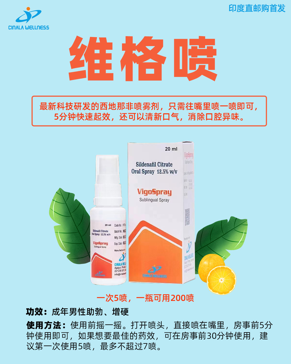 最新科技研发的西地那非喷雾剂,只需往嘴里喷一喷即可,