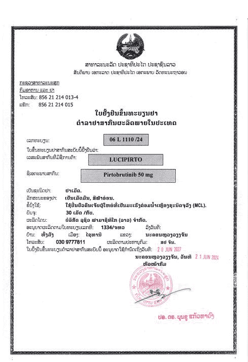 LuciPirto适用于治疗至少接受过两种系统疗法(包括BTK抑制剂)的复发性或难治性套细胞巴瘤(MCL)成年患者。