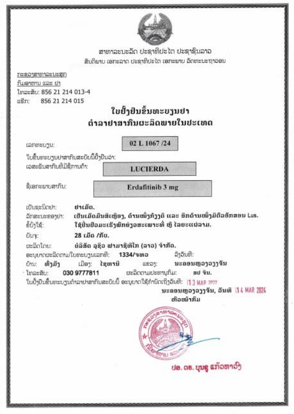 厄达替尼3mg 老挝药监局备案文号