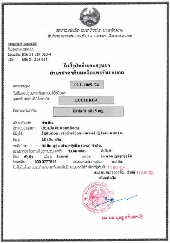 厄达替尼5mg 老挝药监局备案文号