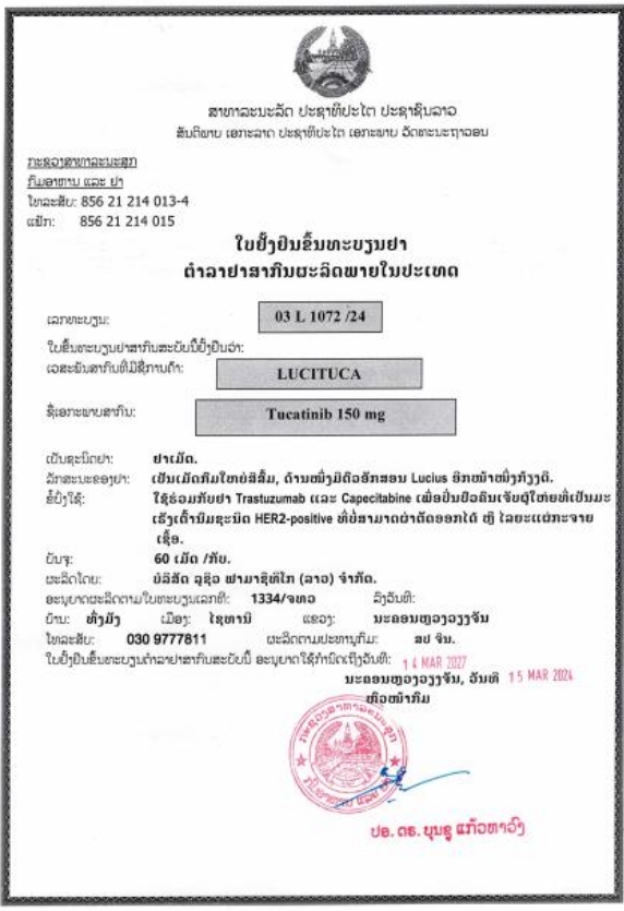 | 产品名称 : | 图卡替尼片 LuciTuca(Tucatinib Tablets) 妥卡替尼 TUKYSA 150mg*60片 |