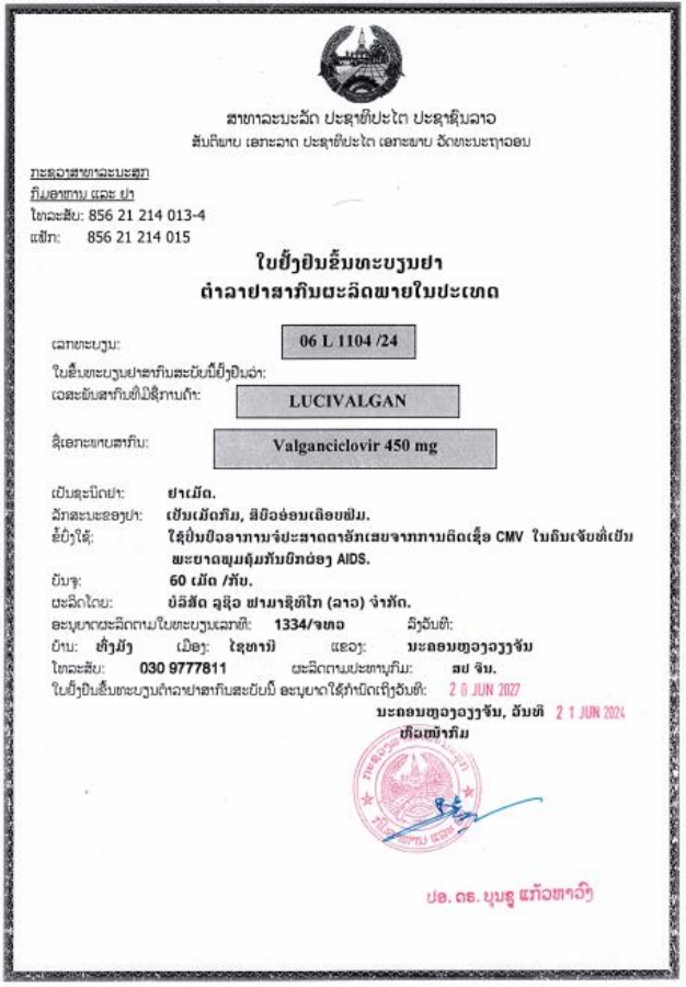 老挝国际药品批准文号:06 L 1104/24