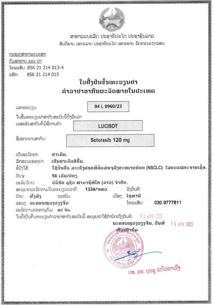 老挝国际药品批准文号:04 L 0960/23