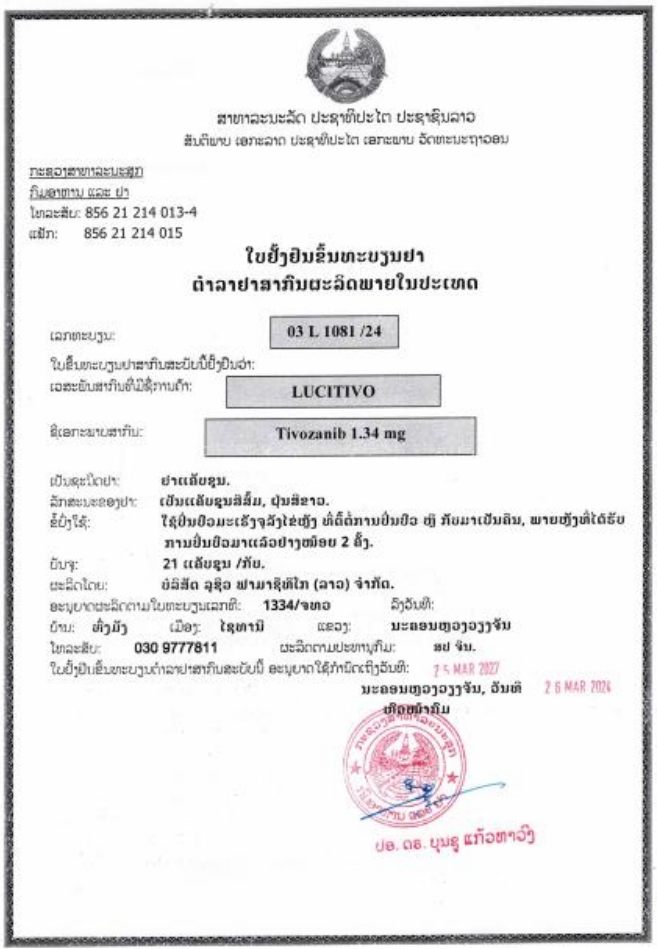 英文名称:Tivozanib