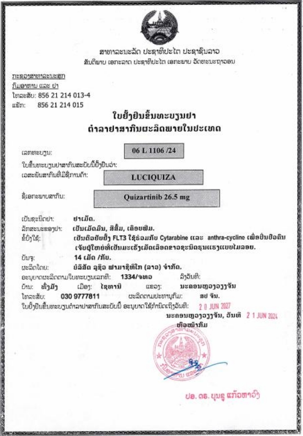 | 产品名称 : | 奎扎替尼(quizartinib)Vanflyta 托舍多特 LuciQuiza 17.7mg/26.5mg*14片 |