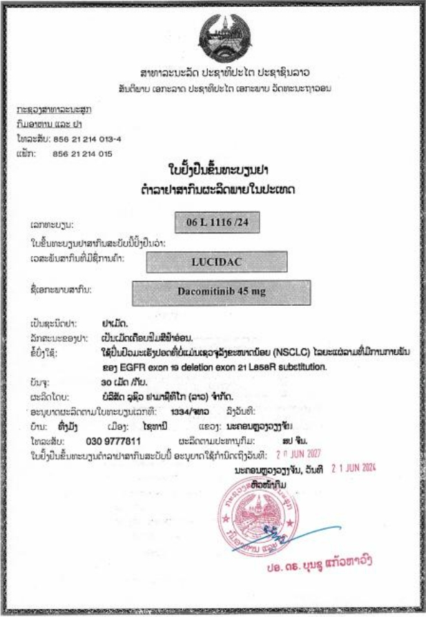 | 产品名称 : | 达克替尼 多泽润 Dacomitinib 达克米替尼 Vizimpro 达可替尼 LuciDac 15mg 45mg |