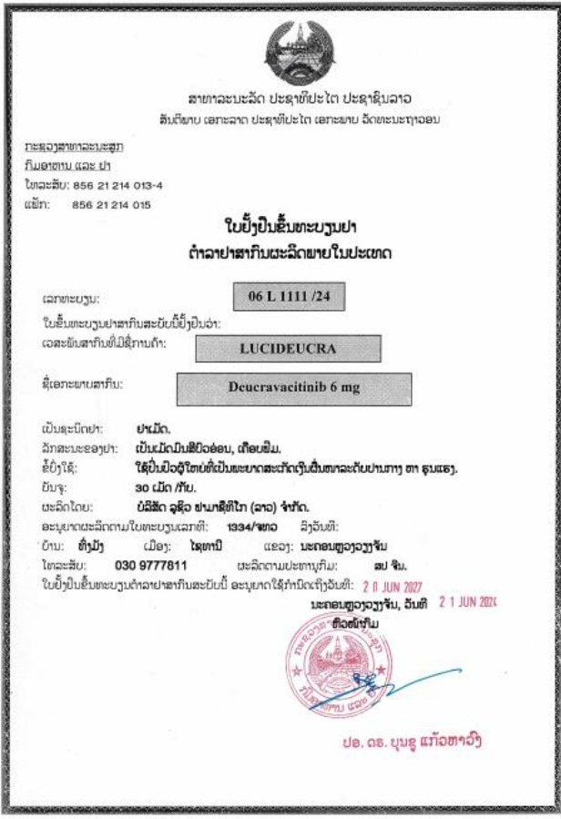 | 适用于: | LuciDeucra是一种酪氨酸激酶2(TYK2)抑制剂,适用于治疗适合全身治疗或光疗的中重度斑块状银屑病成年患者。 |