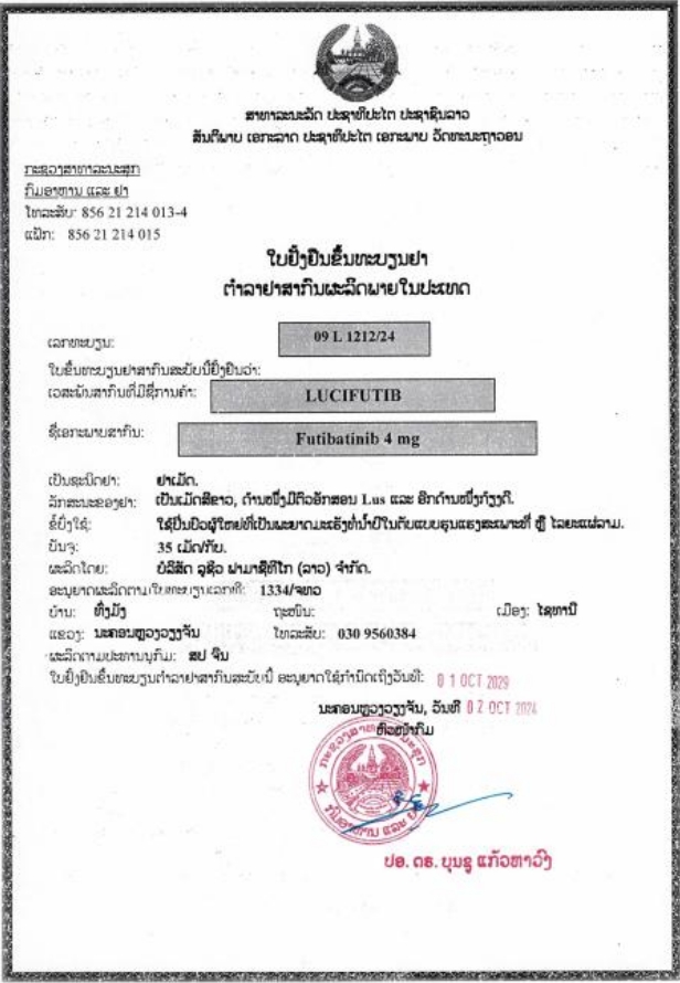 | 产品名称 : | 福巴替尼片 Futibatinib tablets 福替替尼 Lytgobi LuciFutib |