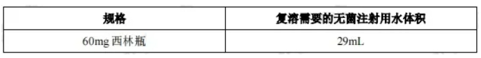 5. 给药前需肉眼观察溶液是否含有颗粒物,是否变色。复溶产品应为无色澄清溶液。若观察到复溶产品有任何变色或颗粒物,请勿使用。