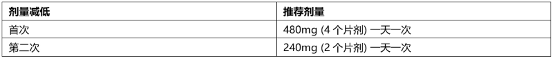 如果出现不良反应,最多允许减少两次剂量。如果患者不能耐受每日一次240 mg的最低剂量,则停止使用本品。