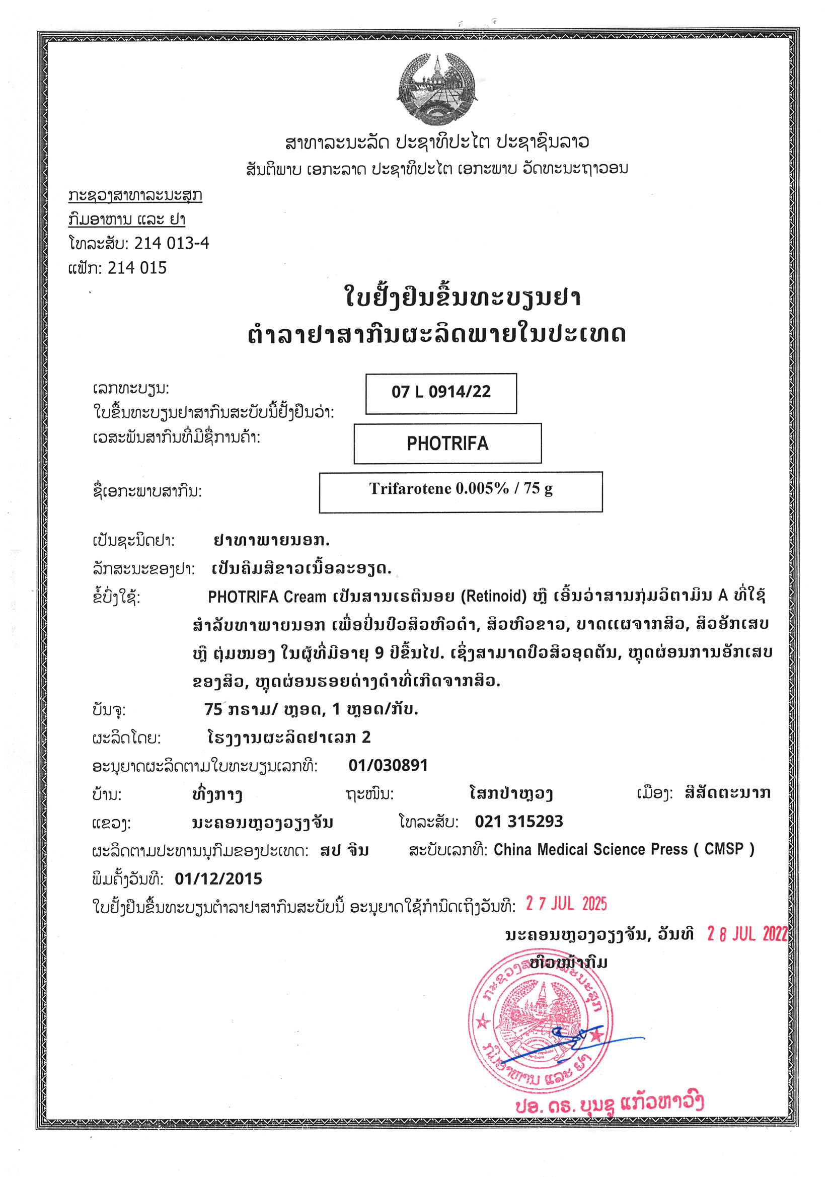| 产品名称 : | 第四代维A酸曲法罗汀软膏75g/瓶 trifarotene |