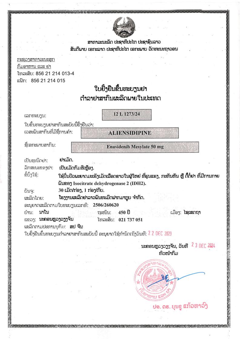 老挝国家药监局批准文号:11 L 1273/24