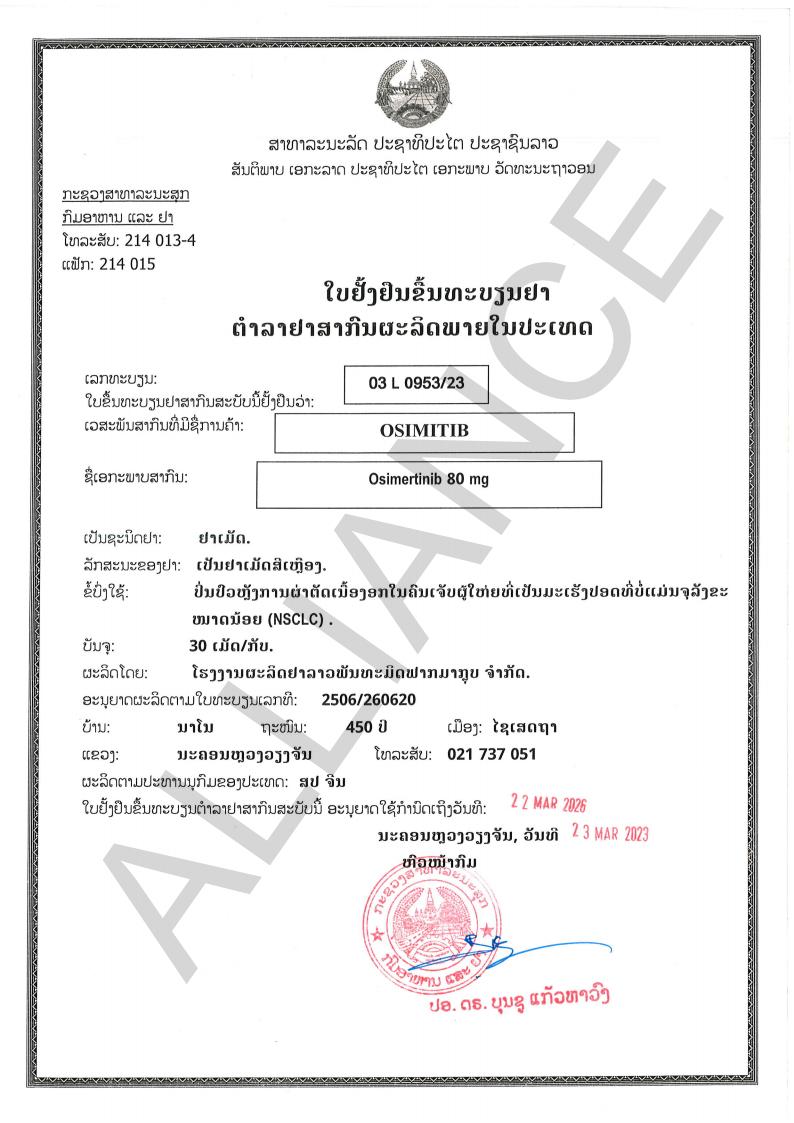 老挝国家药监局批准文号:03 L 0953/23