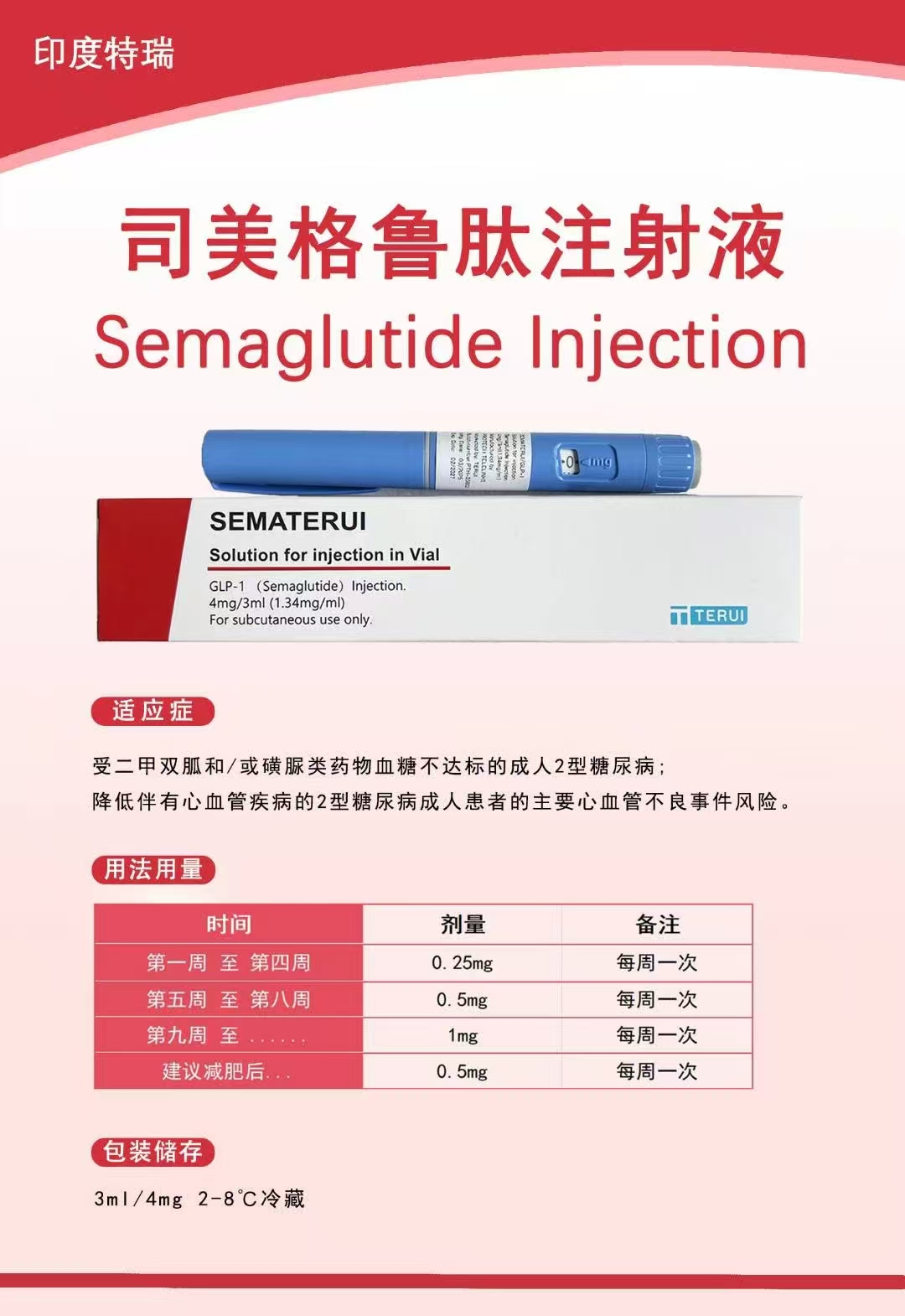 | 产品名称 : | 可打16针司美格鲁肽注射液3ml/4mg(1.34mg/ml) SEMATERUI Semaglutide Injection |